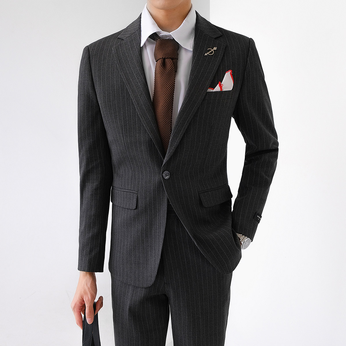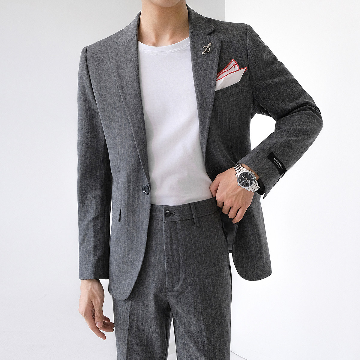Striped suit men's uptight lepsy trend casual business dress blouses Inron handsome suit Single Western suit