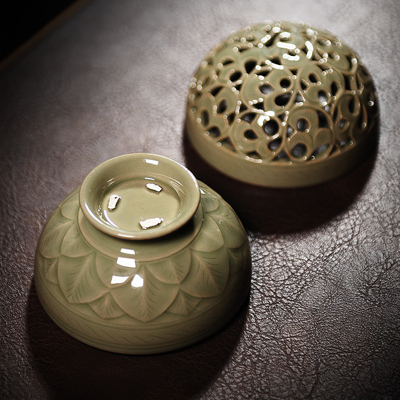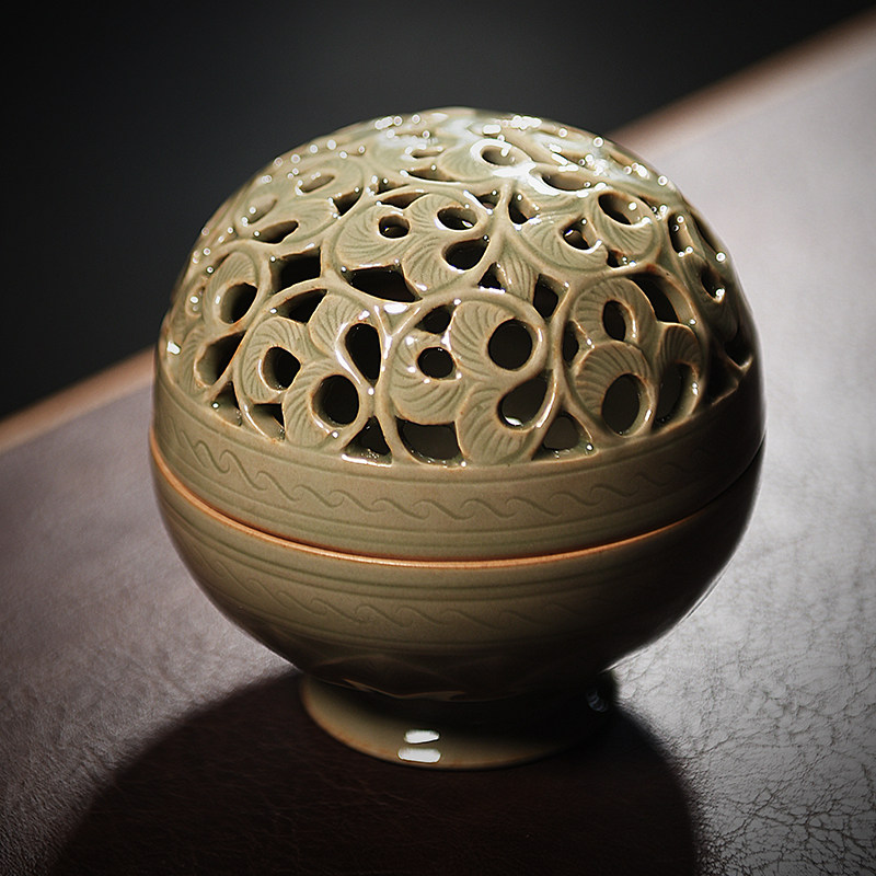 Ultra-kiln green porcelain sandalwood stove fragrant incense stove Zen Dish Incense Stove Indoor Antique home Sunken Incense ceramic incense box Longquan-Taobao