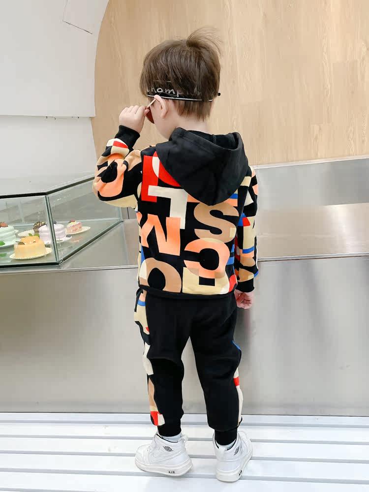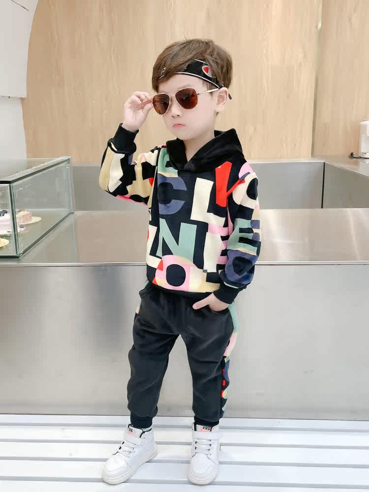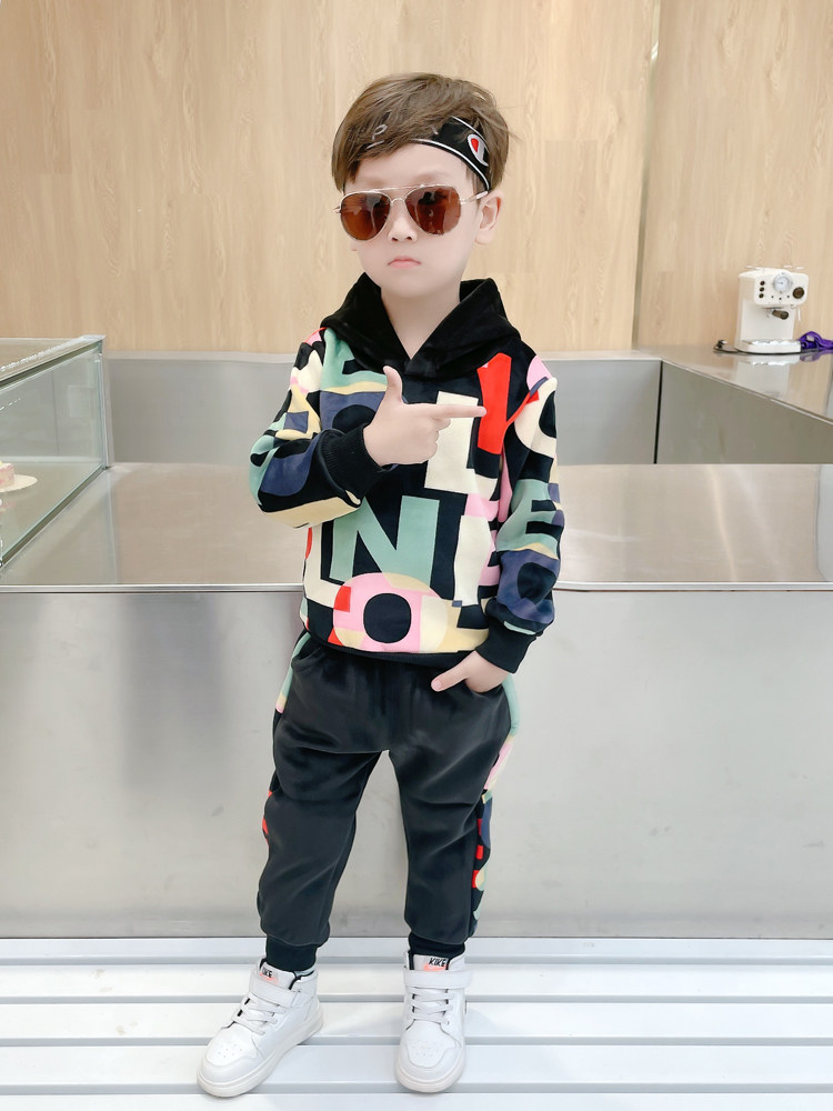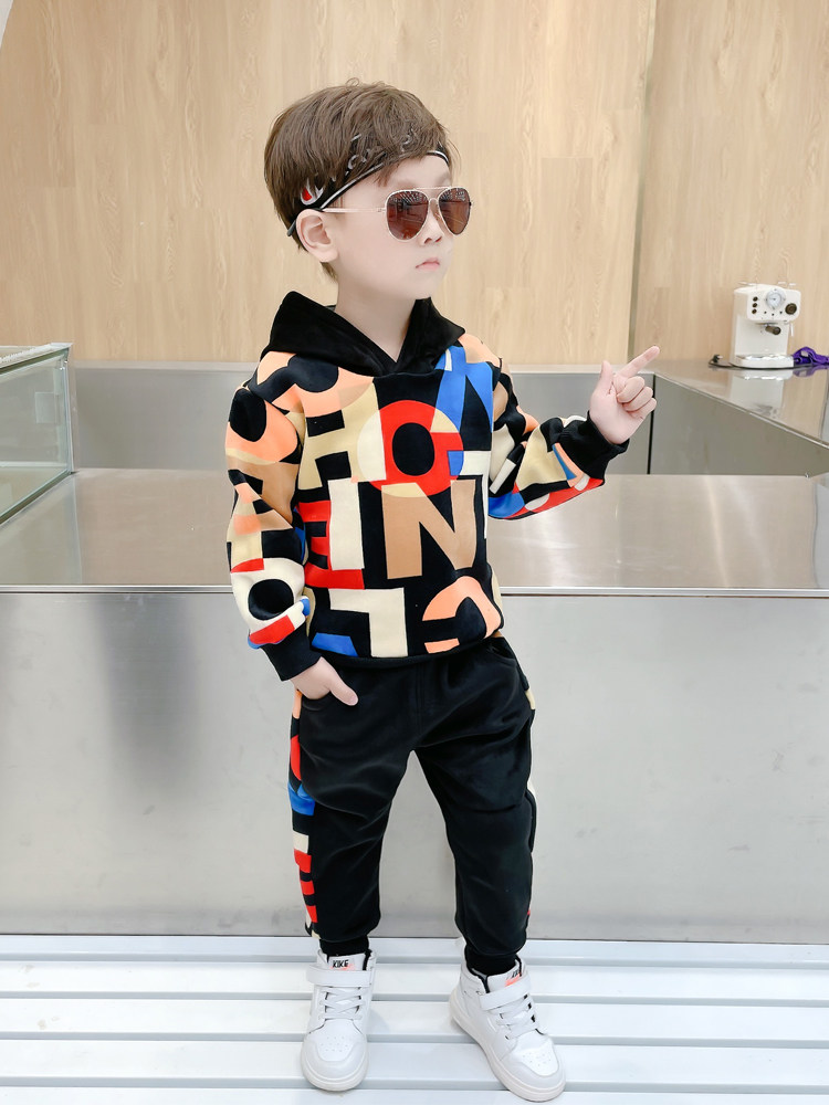 Boy Clothing Boy Autumn Clothing Suit Plus Suede Autumn Winter Middle Children 2021 New Children Long Sleeve Sweatpants Thick Cotton T Two sets
