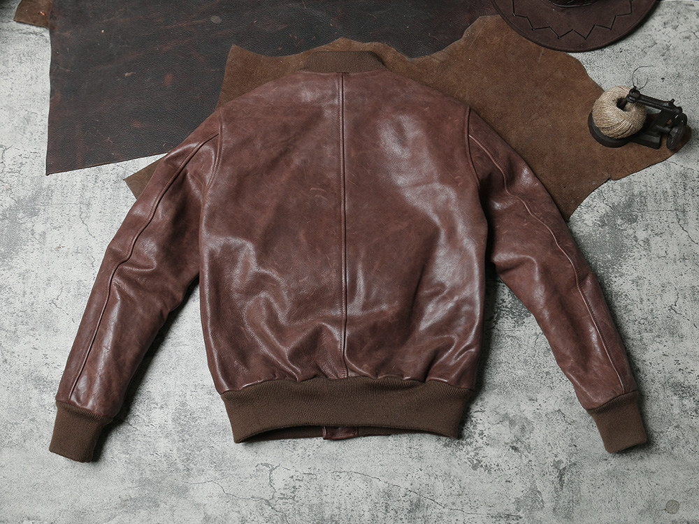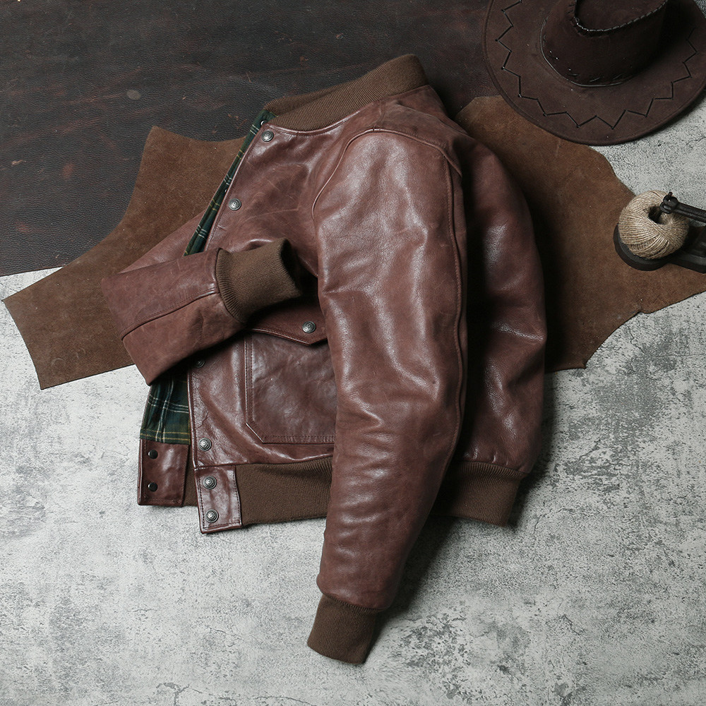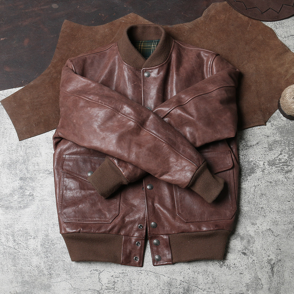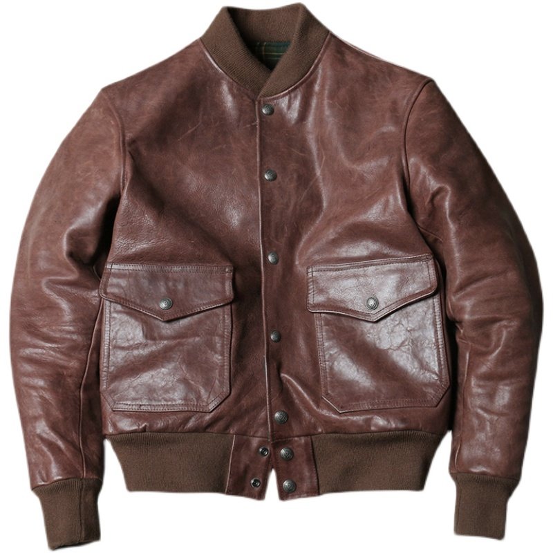 American retro A1 flight suit leather jacket fog wax horse leather jacket men Air Force player leather baseball suit