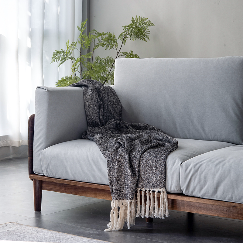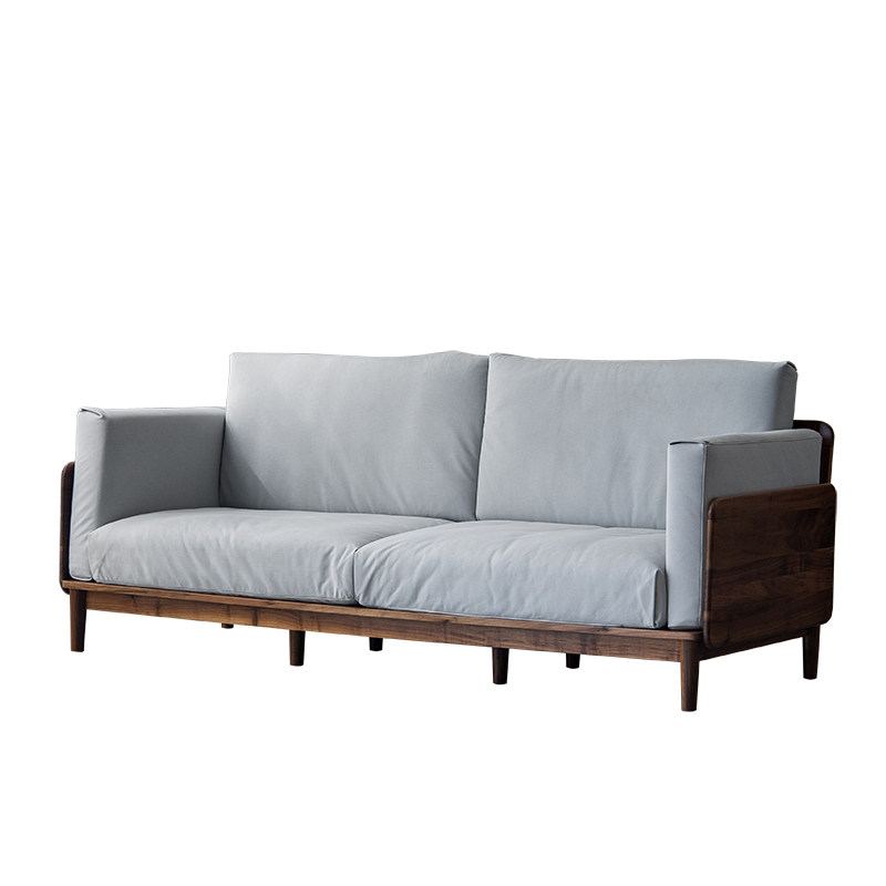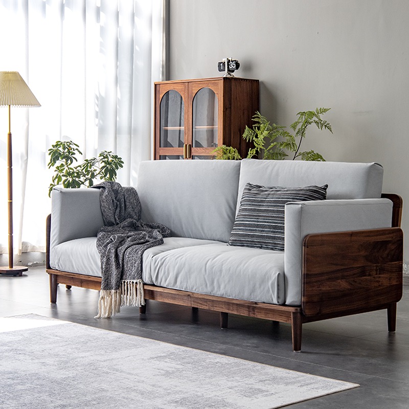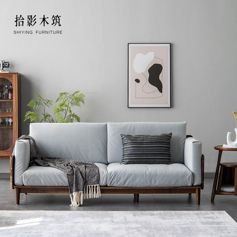 Shiying wood building Nordic simple light luxury black walnut sofa solid wood Japanese-style small apartment three-seat sofa combination