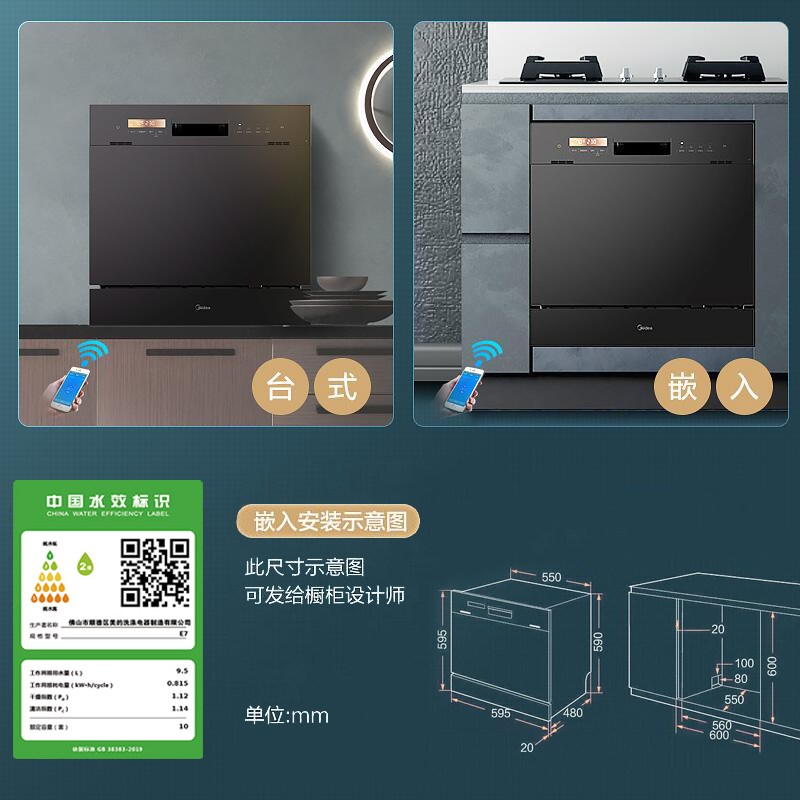 Midea dishwasher fully automatic household 10 sets of hot air drying dishwasher embedded desktop smart home appliance E7