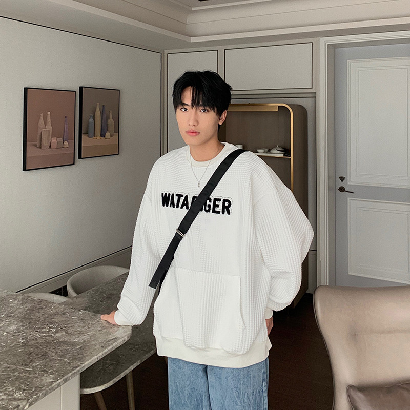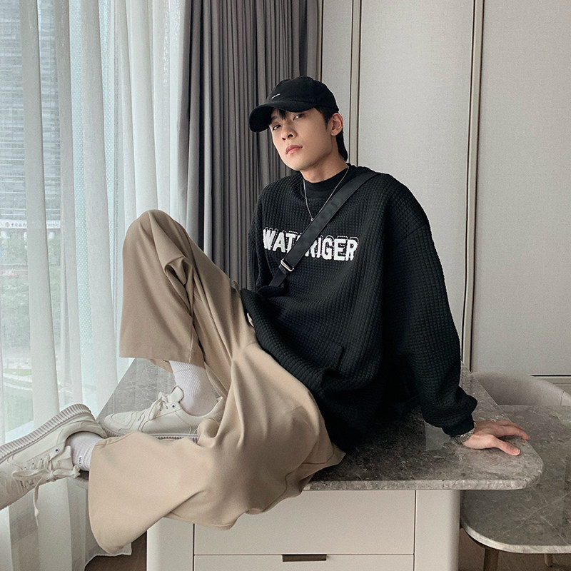 Huanun Fall Huffeug Lovers Round the thick cotton T Men's Chains Loose Tide Card Korean version headliner black blouses