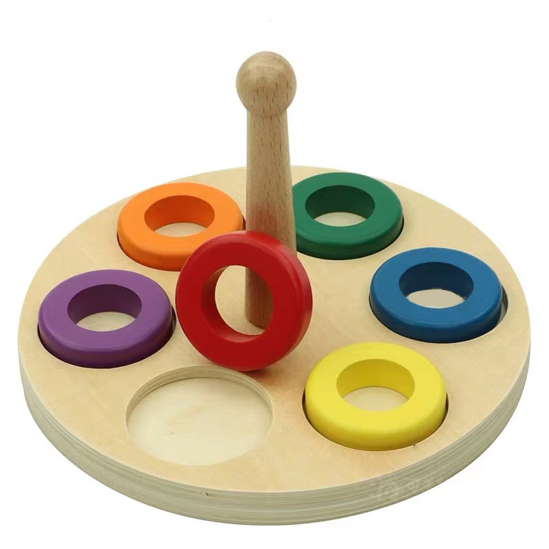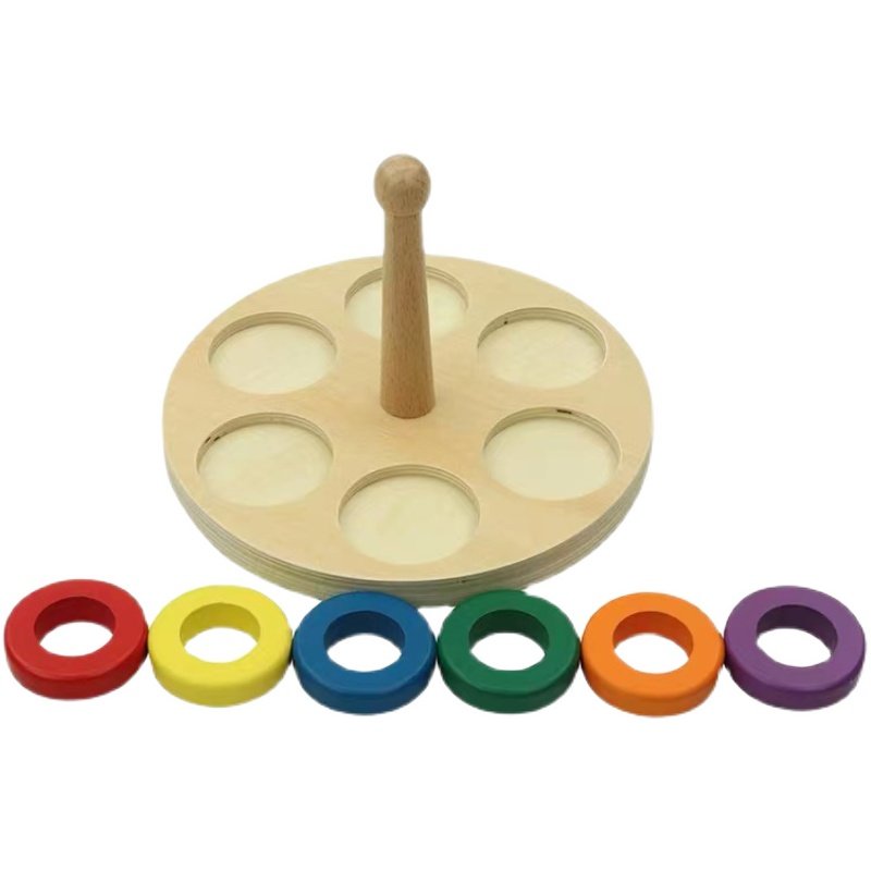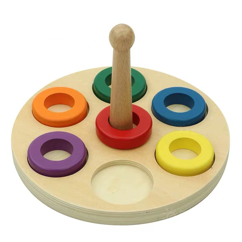 Montessori Montessori wood pillar ring toy wood pile and color ring puzzle early teaching aids 0-3 hand-eye coordination