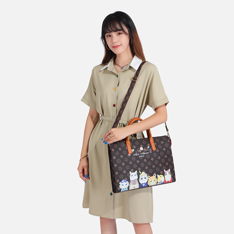 Coffee color (printed six cats) (with shoulder strap) upgraded coffee color (printed six cats) (with shoulder-proof air bag pull strip)