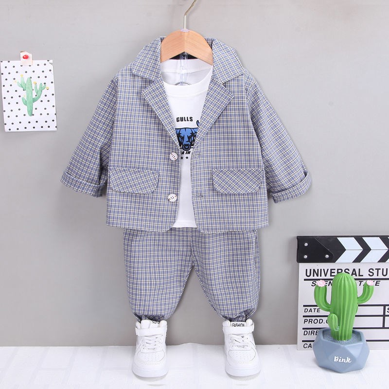 Denim Blue Big Plaid Suit Three Sets Hide Cyan Large Plaid Suit Three Sets Dark Grey Large Plaid Suit Three Sets Light Blue Color Bull Head Plaid Suit Three Sets Hump Color Bull Head Plaid