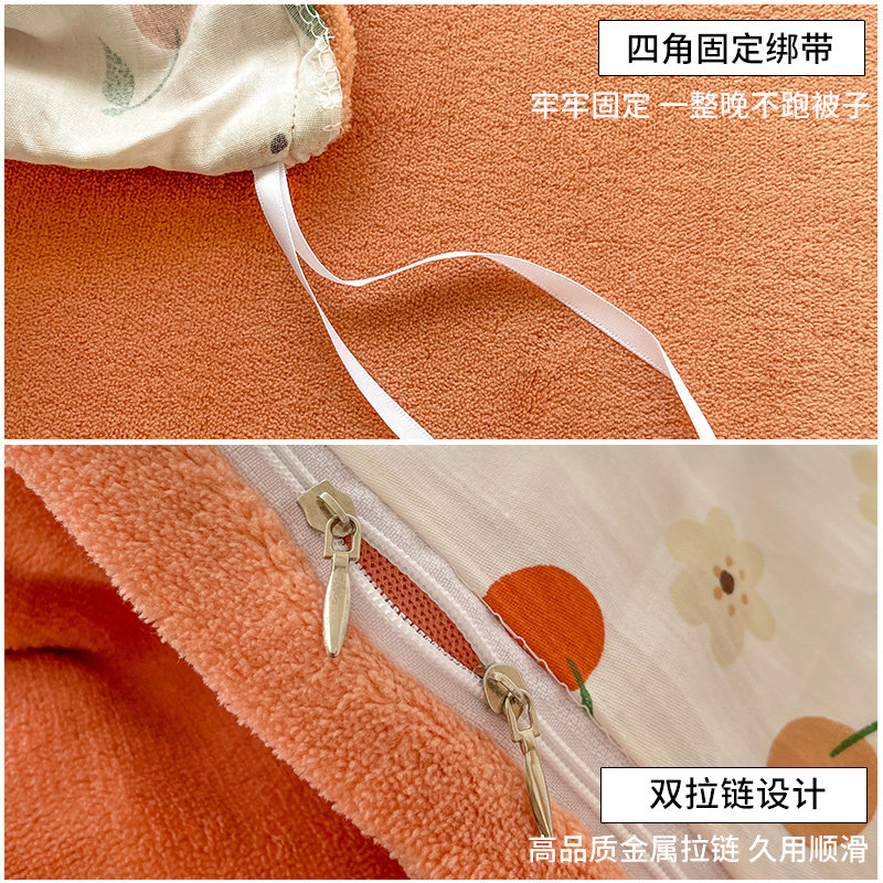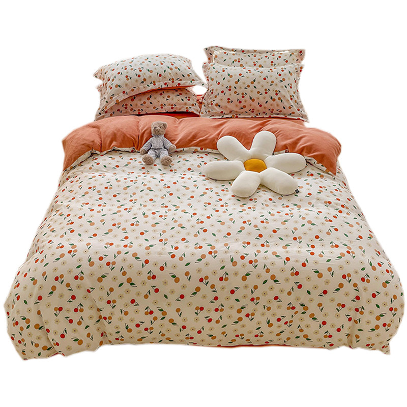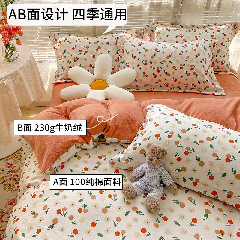 Small fresh ab face pure cotton milk suede four-piece set teenage girl heart autummy winter plus suede three-piece flannel quilt cover bed hat