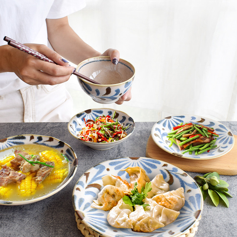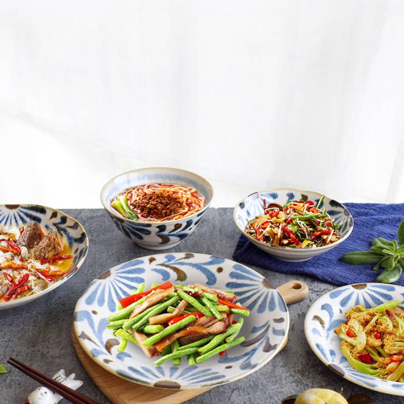 Okinawa Flowers Japan Imported Meinesco glazed under Glaze Dish Soup Bowl of Bubble Noodles Bowl ceramic dishes Home Japanese style cutlery dishes