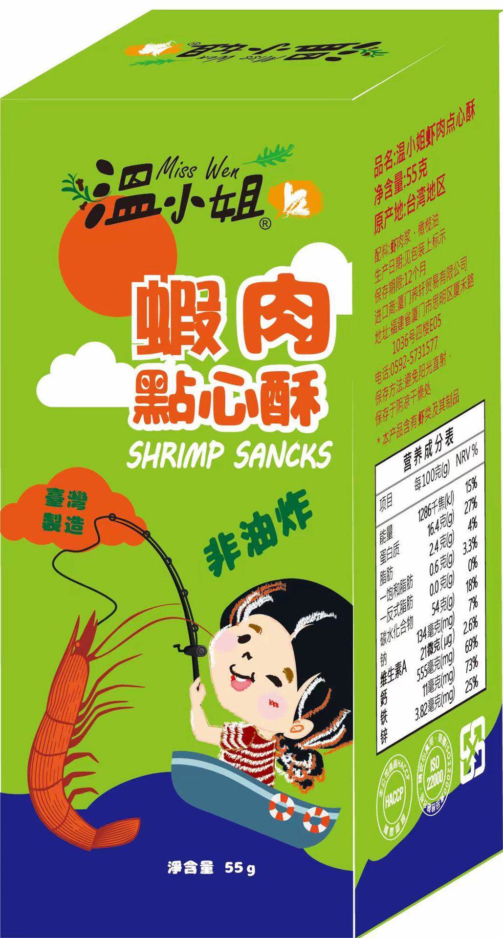 Miss Wines Cod Refreshments Crisp Shrimp Meat Fish Oyster children Baby Nutritious Mixed Meals for Snack Foods 55g
