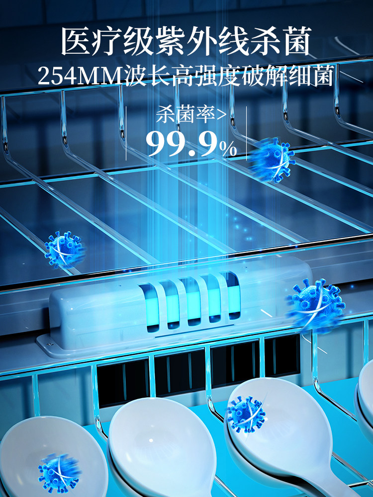 Product introduction (drain-free, gated, energy-saving) 26 UV rays, hot air circulation, drain-free drying, 48L ultraviolet rays, hot air circulation, drain-free drying