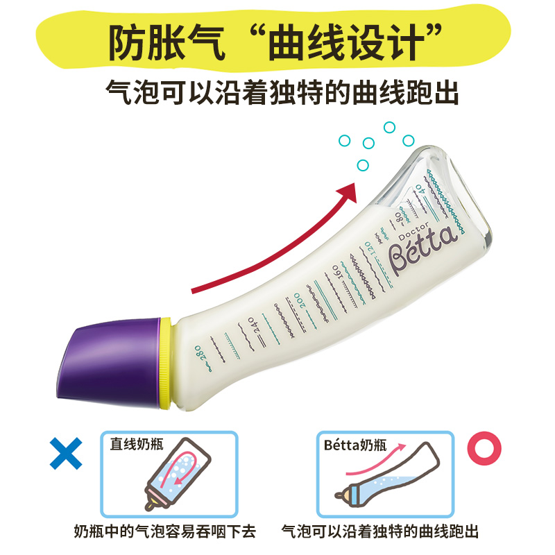 Betta bottle Japan imported newborn baby anti-choking milk anti-flatulence large capacity 280ML weaning glass bottle