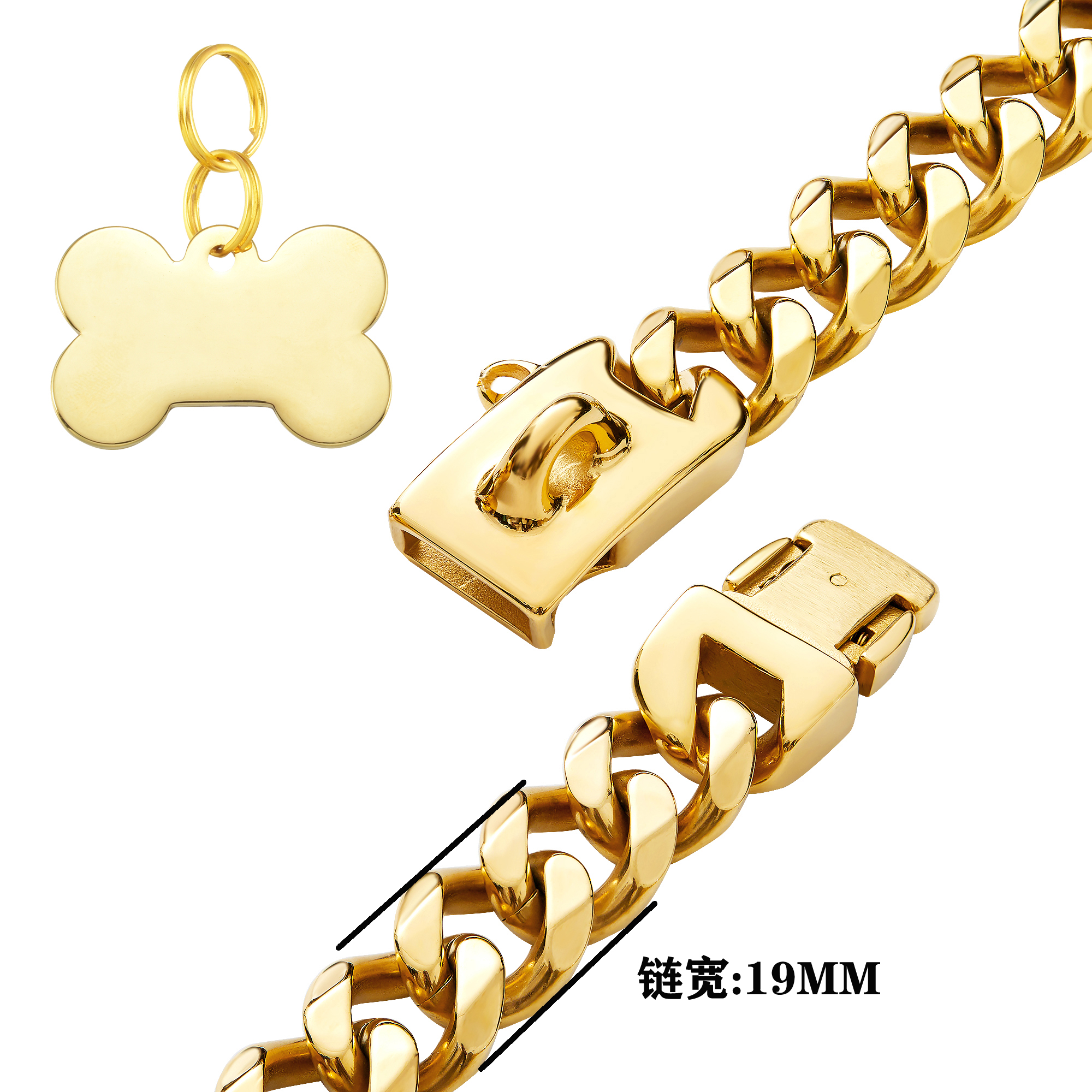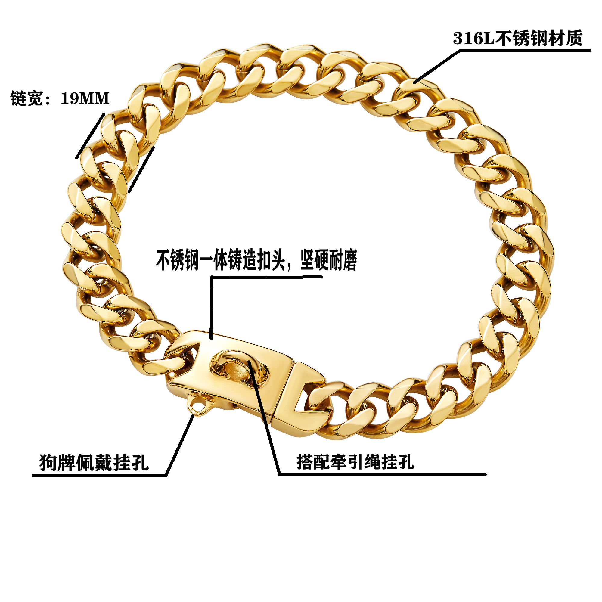 High-end stainless steel pet lettering dog necklace large gold necklace with large canine bully castro in traction rope