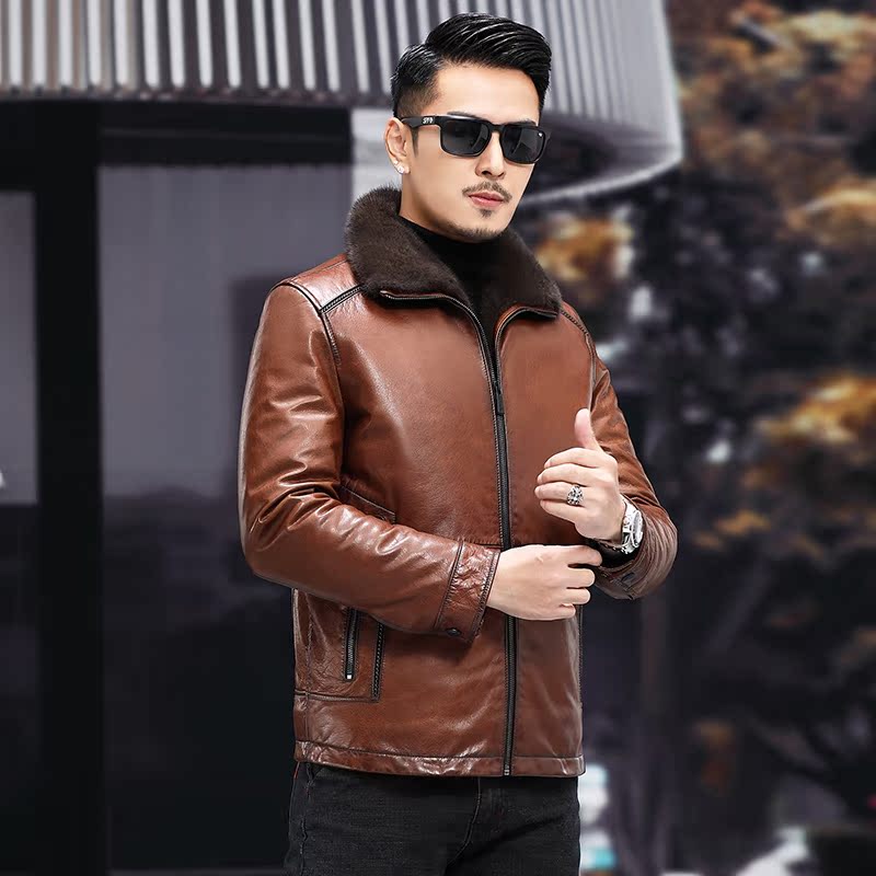 New mink leather jacket men's mink oil wax sheep leather jacket Water mink liner big coat fur integrated genuine leather fur coat