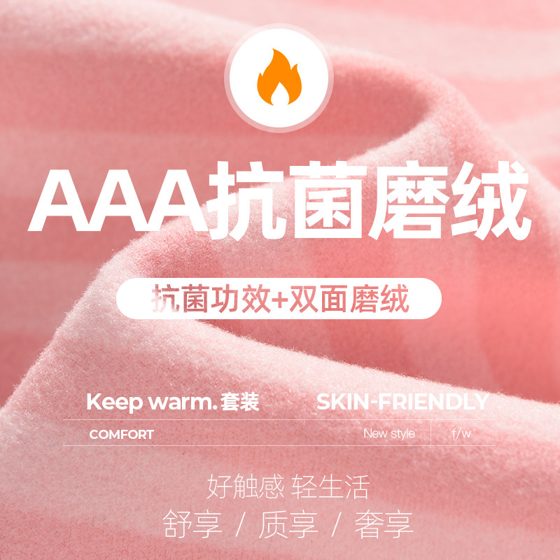 Antibacterial fiber yang ion lady striped autumn pants student round-collar wear teen warm underwear suit