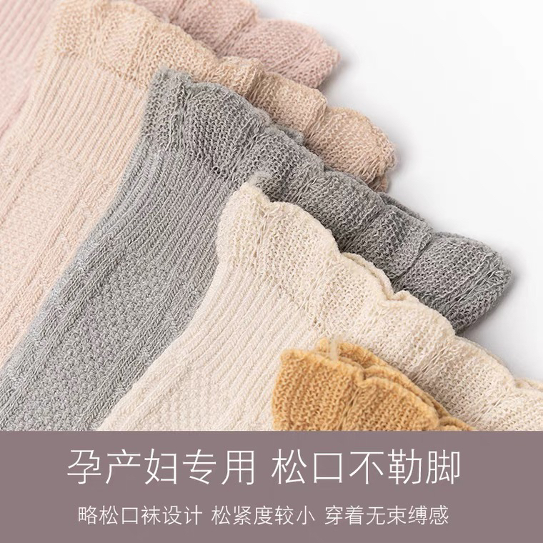 Confinement socks spring and autumn cotton socks postpartum October November loose mouth pregnant women mid-tube warm lace cute socks