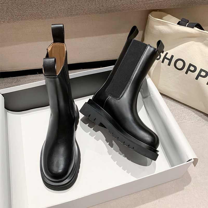 Martin boots female British style 2022 new spring and autumn single boots leather chimney mid-tube thick bottom Chelsea short boots