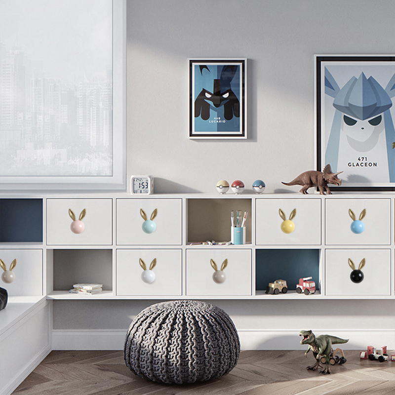 Light and luxurious rabbit handle Children's room Wardrobe Door Overall Cupboard Subfurniture Furniture drawers White minimalist Single-hole small handle