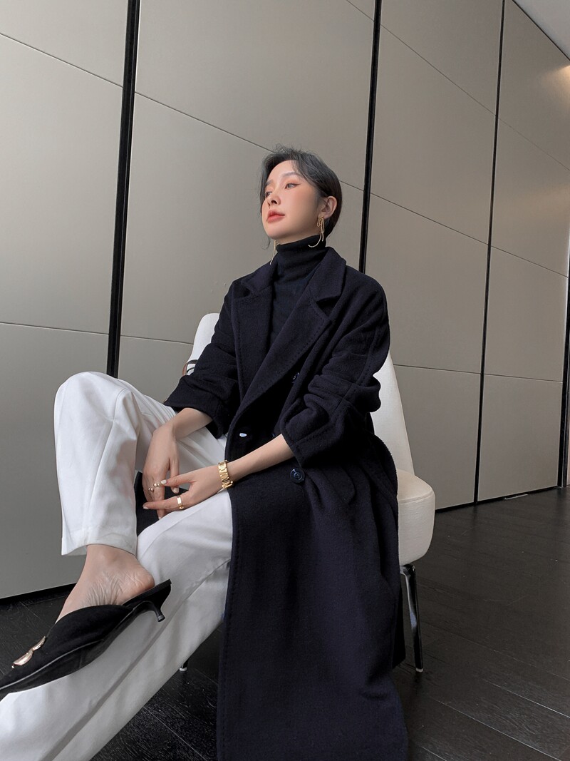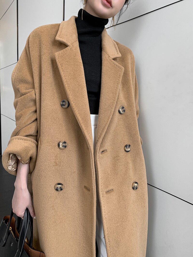 101801 High-end Classic Camel Wool Coat 2021 Winter Thickened Double-Row Buckle Bifacial Cashmere Dresses Woman