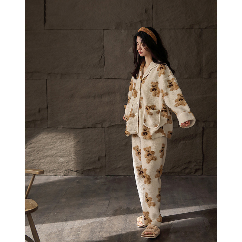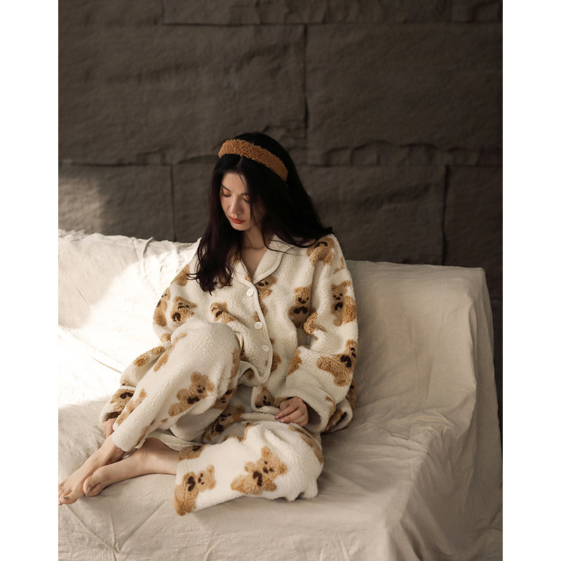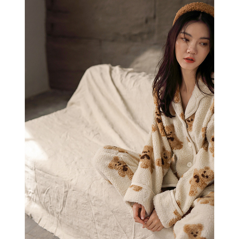 Coral Suede Pajamas Woman Winter New Thicken Plus Suede Lovely Home Dress Lady Flannel Autumn Winter Day Two Sets