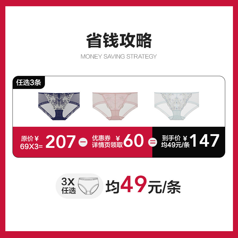 (3 optional all RMB49 strips) AIMER Underpants female sensation lace red middle waist flat angle AM236991