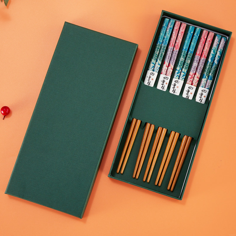 Hefeng Four Seasons Chopsticks-5 Pairs-Gift Box Five Wood Chopsticks-5 Pairs-Gift Box Lucky Cats-5 Pairs-Gift Box