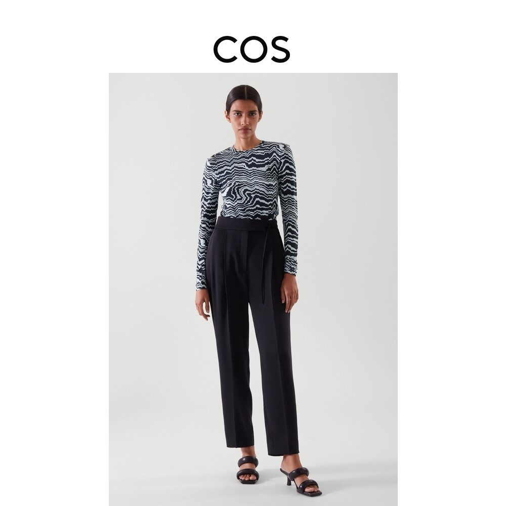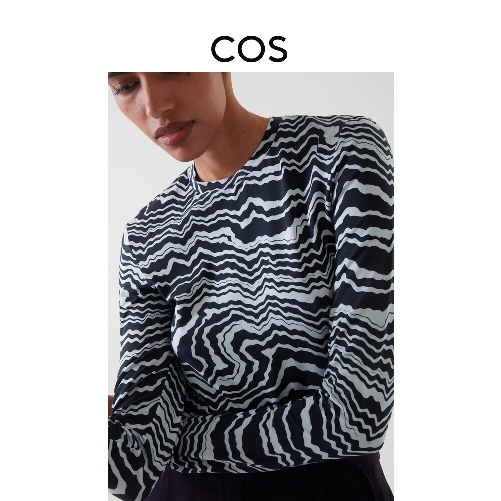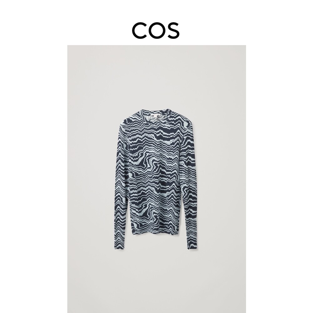 COS women's fit version round collar elastic printed undershirt dark blue new product 0959802006