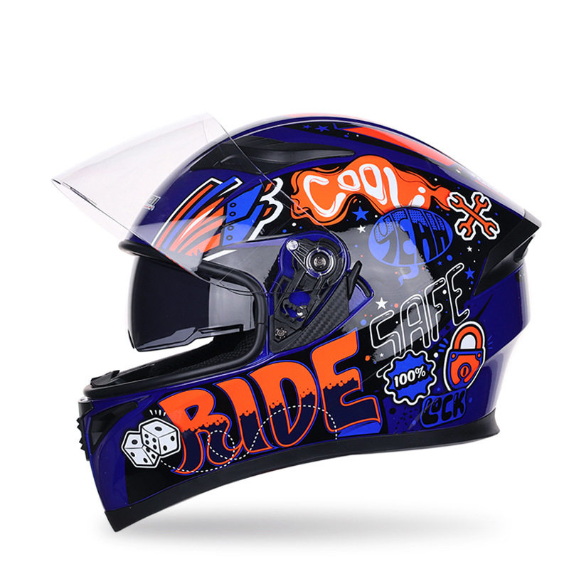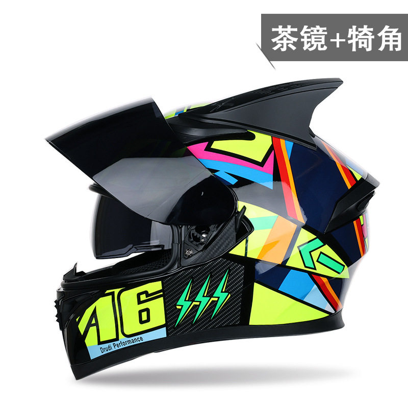 Electric motor vehicles Double lenses All Helmets men and women Seasons Universal Locomotive Anti-Fog Safety Helmet Capsized Racing Personality Cool