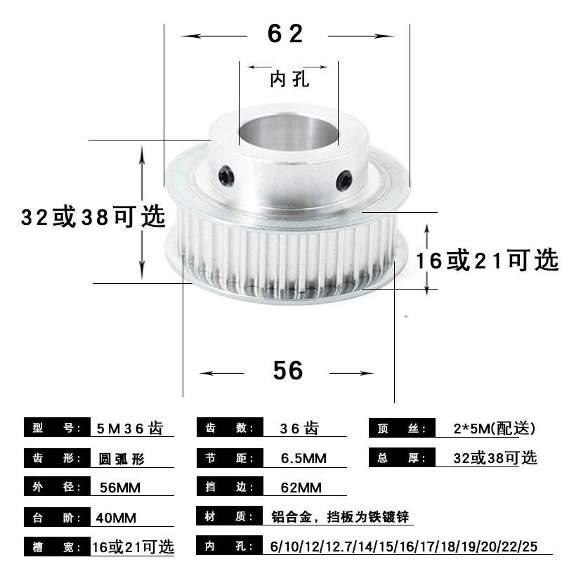 5M36 tooth BF type slot width 16 inner hole 85M36 tooth BF type slot width 16 inner hole 105M36 tooth BF type slot width 16 inner hole 125M36 tooth BF type slot width 16 inner hole