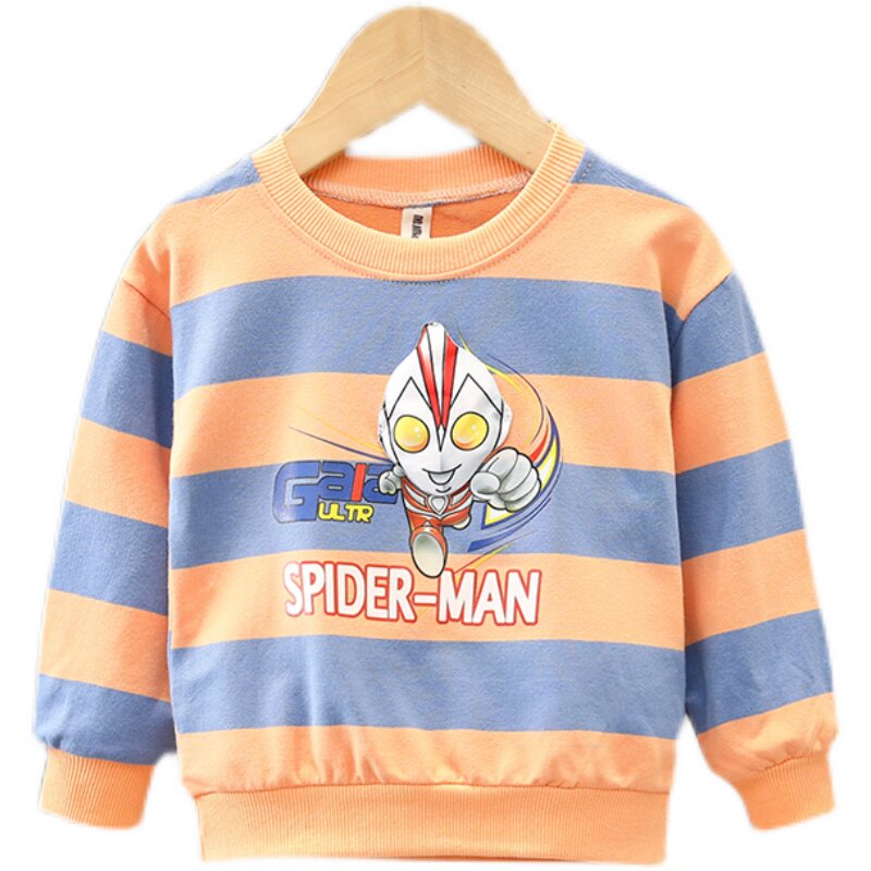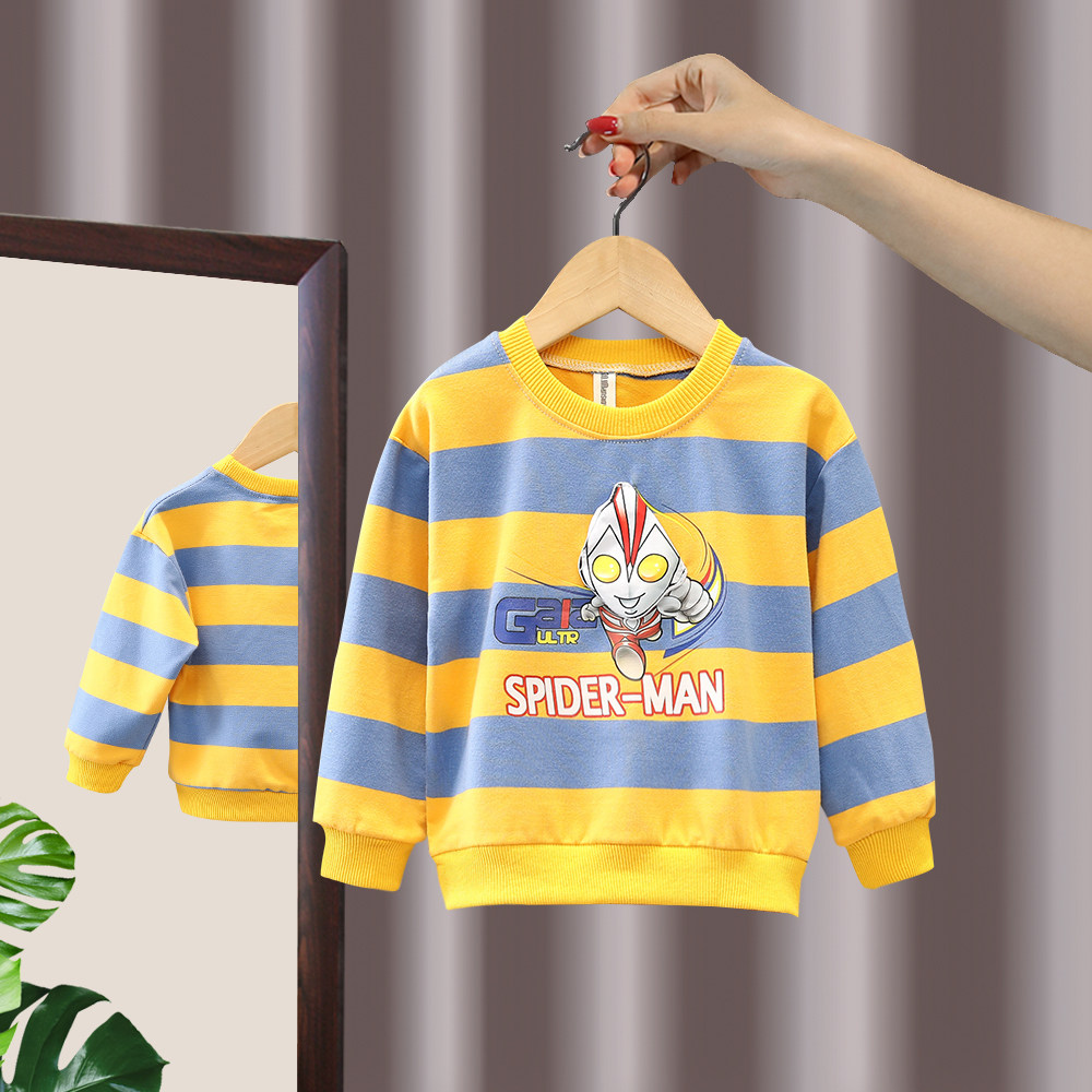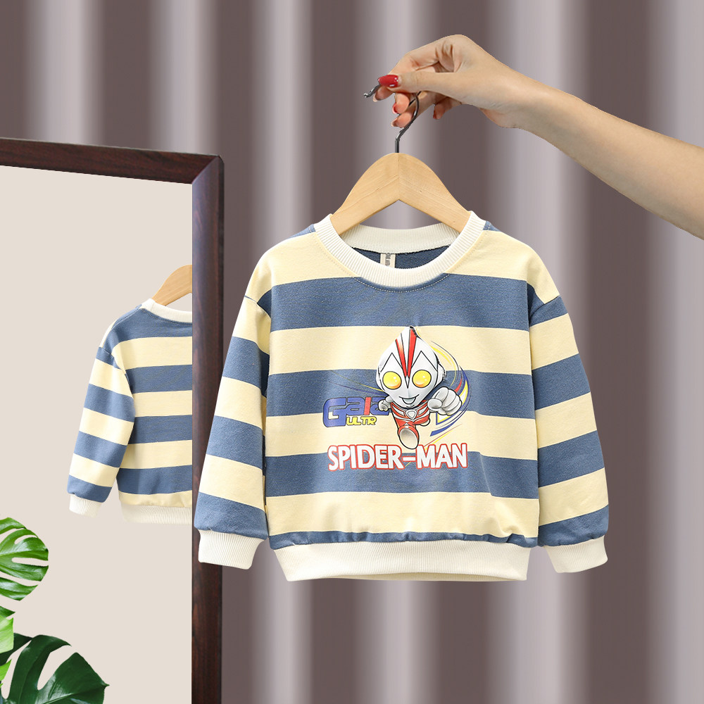 Boys Ultraman sweater striped little boy round neck inner clothes handsome baby spring and autumn cartoon bottoming shirt tide