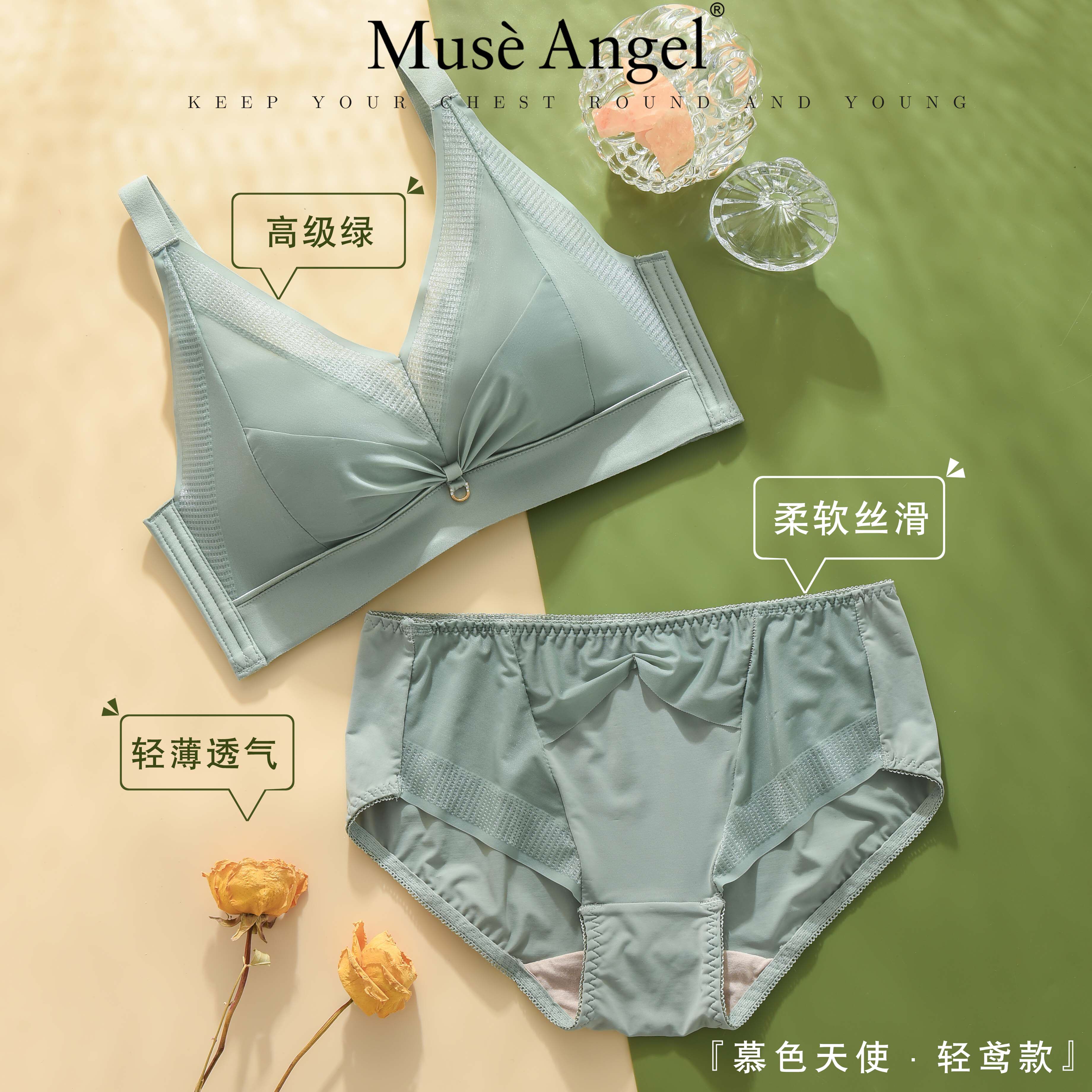 Mural Angel Light Kite's underwear Female suit Sexy thin Chest Poly bra Anti-sagging No steel ring hollowed out