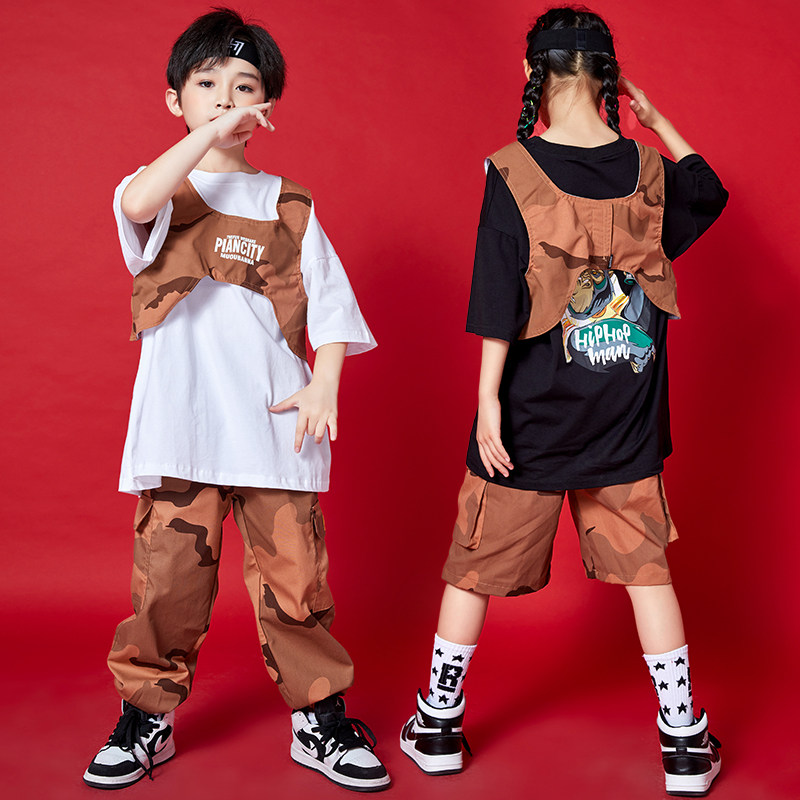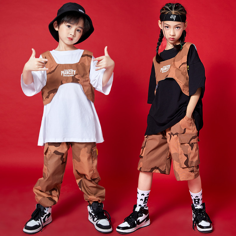 Boys' hip-hop suits, children's hip-hop tooling clothing, jazz dance trend, girls' toddler camouflage hiphop costumes