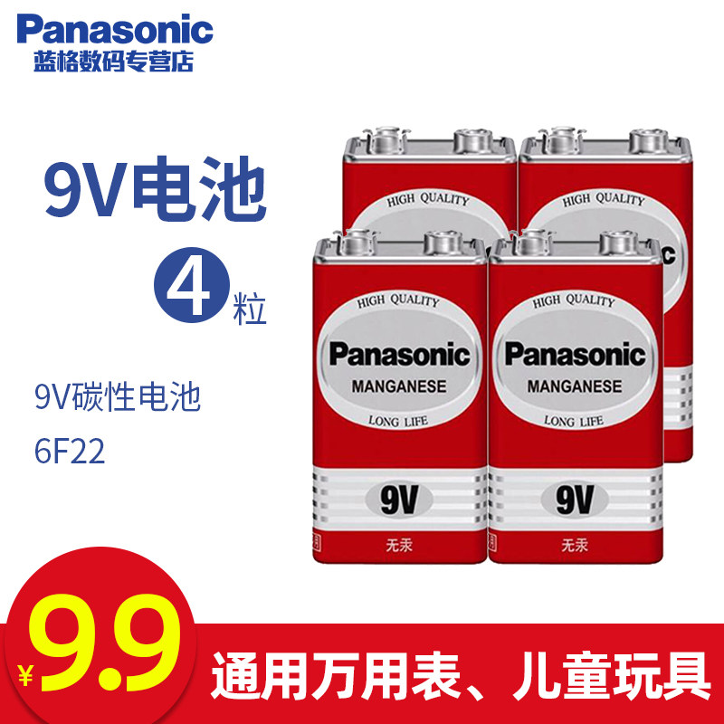 Panasonic 9V battery 6F22 electronic thermometer body temperature gun battery laminated square carbon smoke alarm mike Wan with electric meter battery 9 volt square large battery universal table wholesale