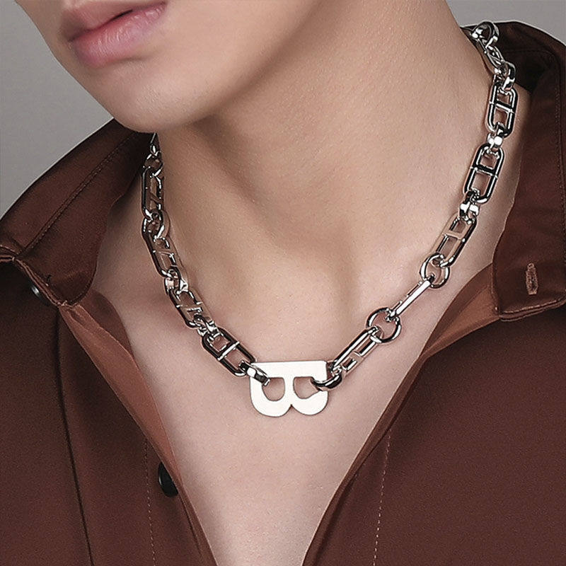 Sterling silver B letter necklace men's high-end trendy exaggerated all-match chain ins hip-hop style light luxury niche clavicle chain
