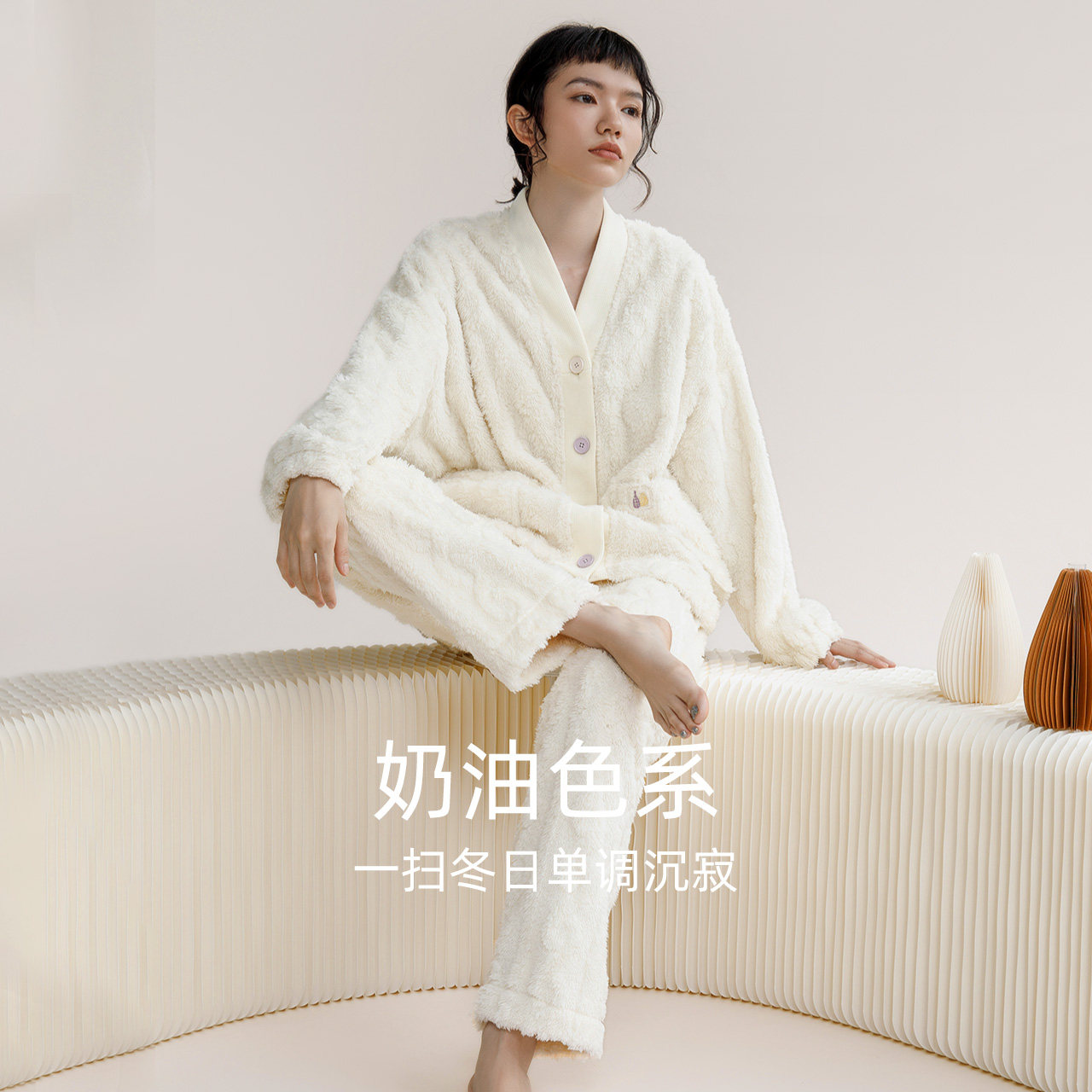 Lady Red Bean Sleeping Dress Coral Suede Jacquard Spring Autumn Flannel Loose Casual can be worn outside winter Home Clothing Suit