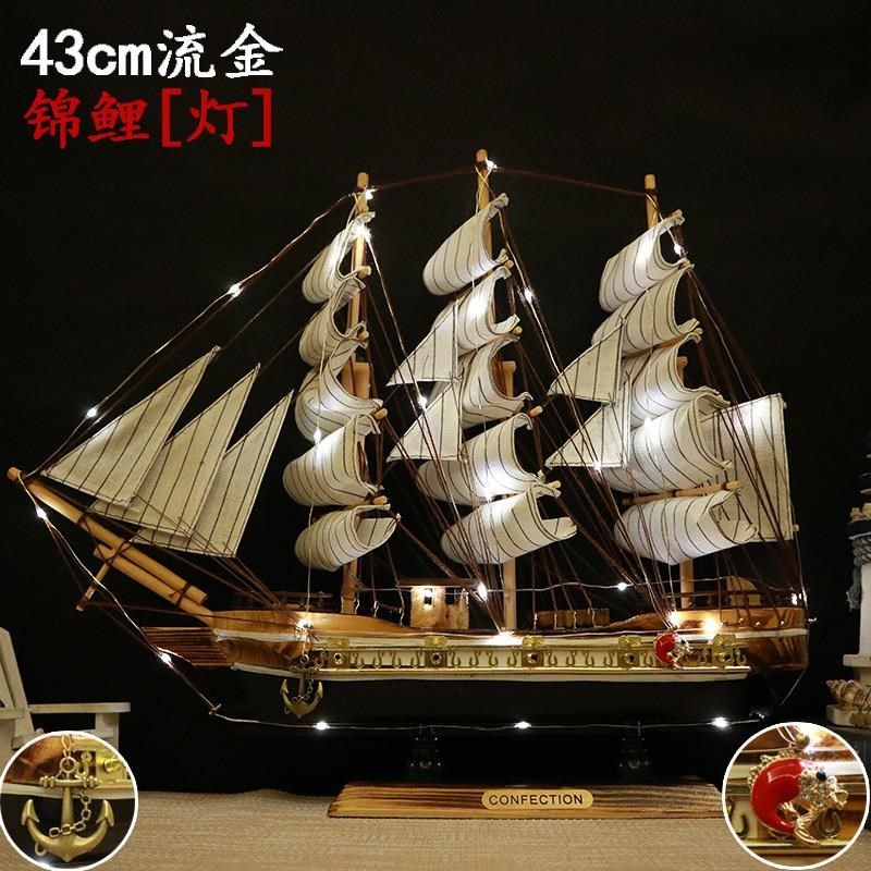 Chinese solid wood sailing handicrafts with lamp sailing model fitting the living room small placement birthday present