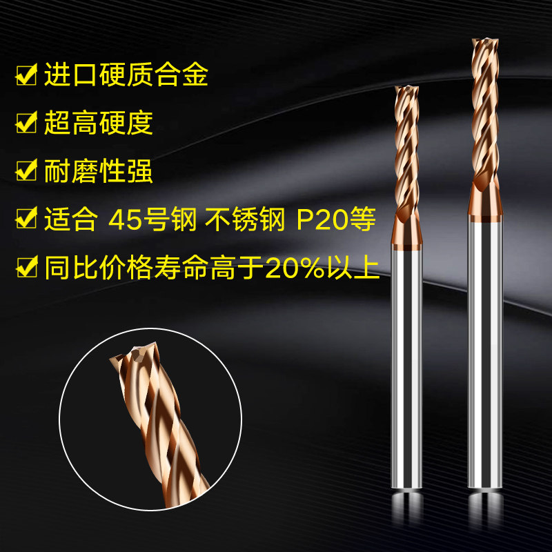 Hard alloy milling cutter 1 0MM lengthened blade 2 0MM coated ultra-hard tungsten steel lengthened milling cutter 4 blades 3 0 4 0MM
