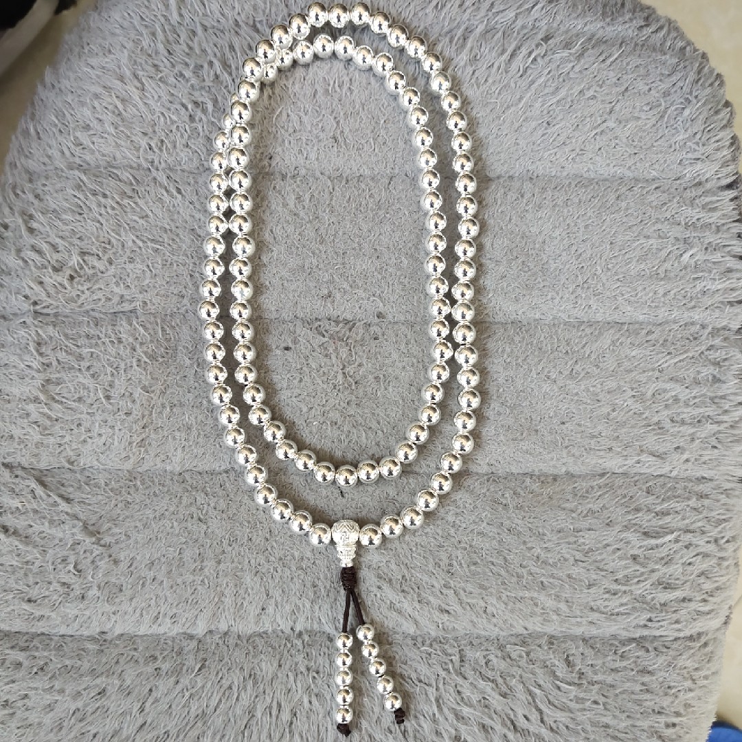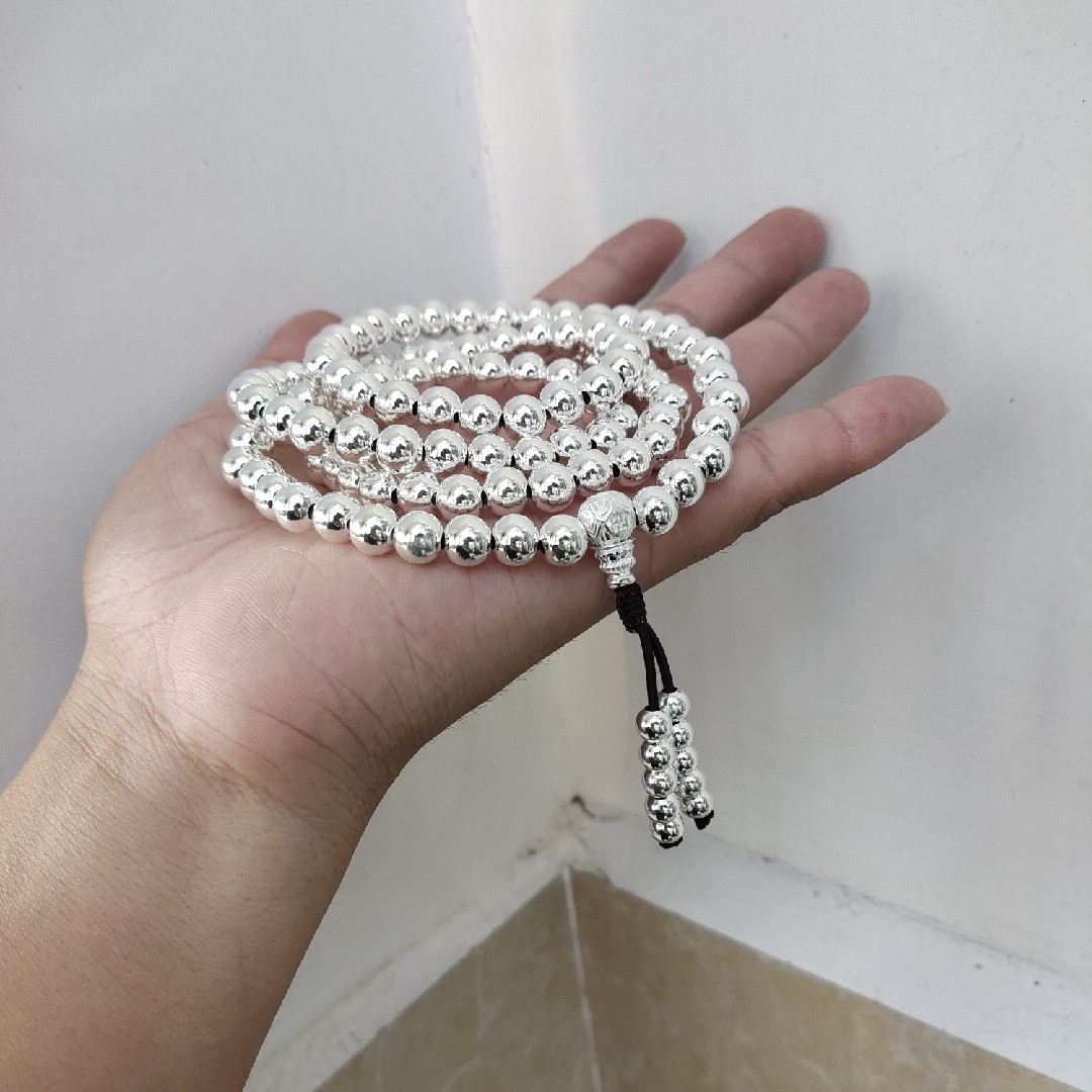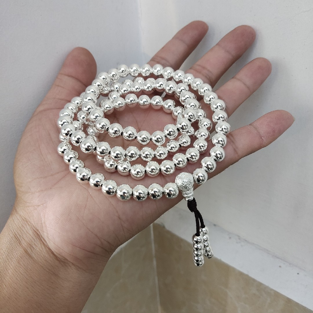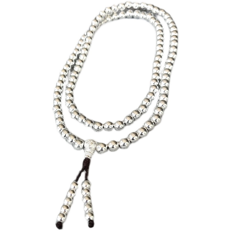 999 pure silver necklace with 108 Buddha beads necklace hollow pure silver necklace pure silver handmade 8mm hollow pure silver beads