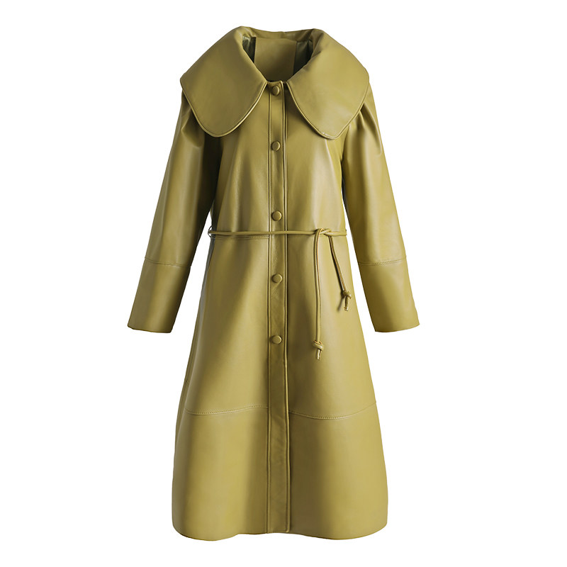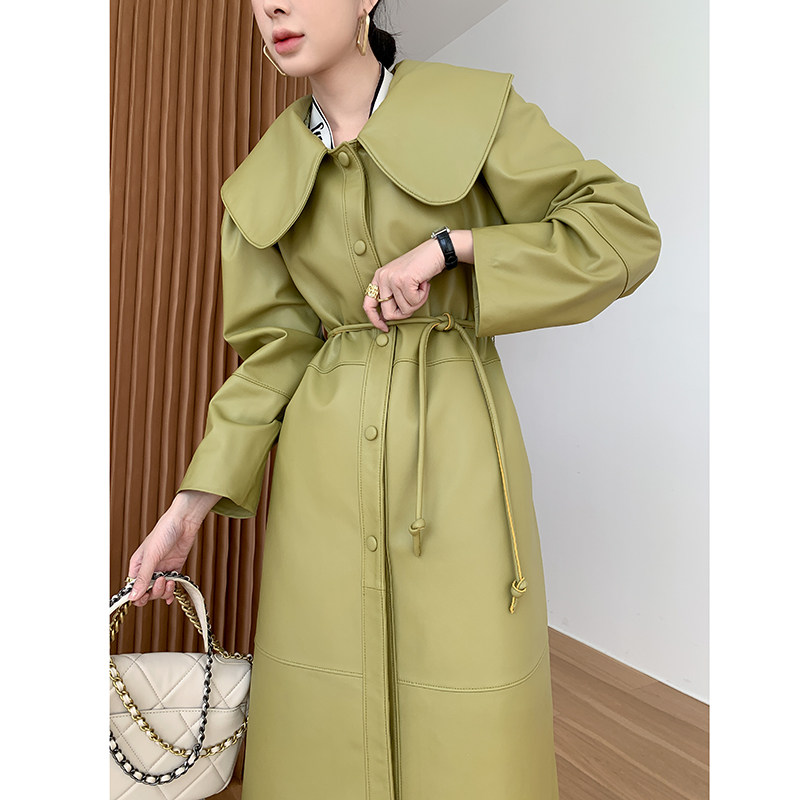 KC home 2021 autumn new leather leather women long windbreaker vintage temperament doll collar sheepskin coat