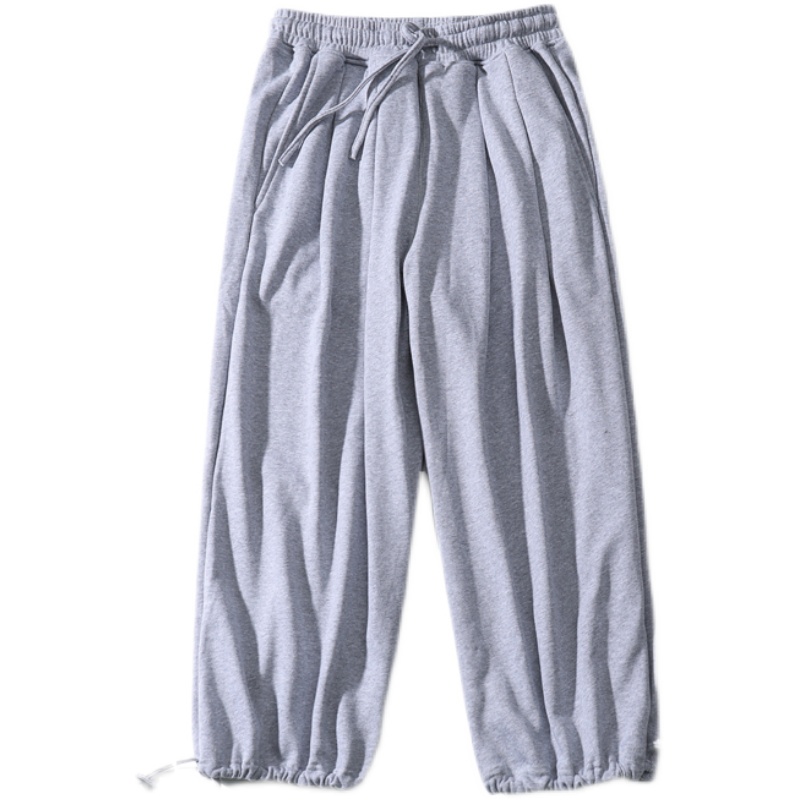 Bemiz Cup Noodle Guide American retro flower gray sports pants men's drawstring loose beam feet wide leg casual pants