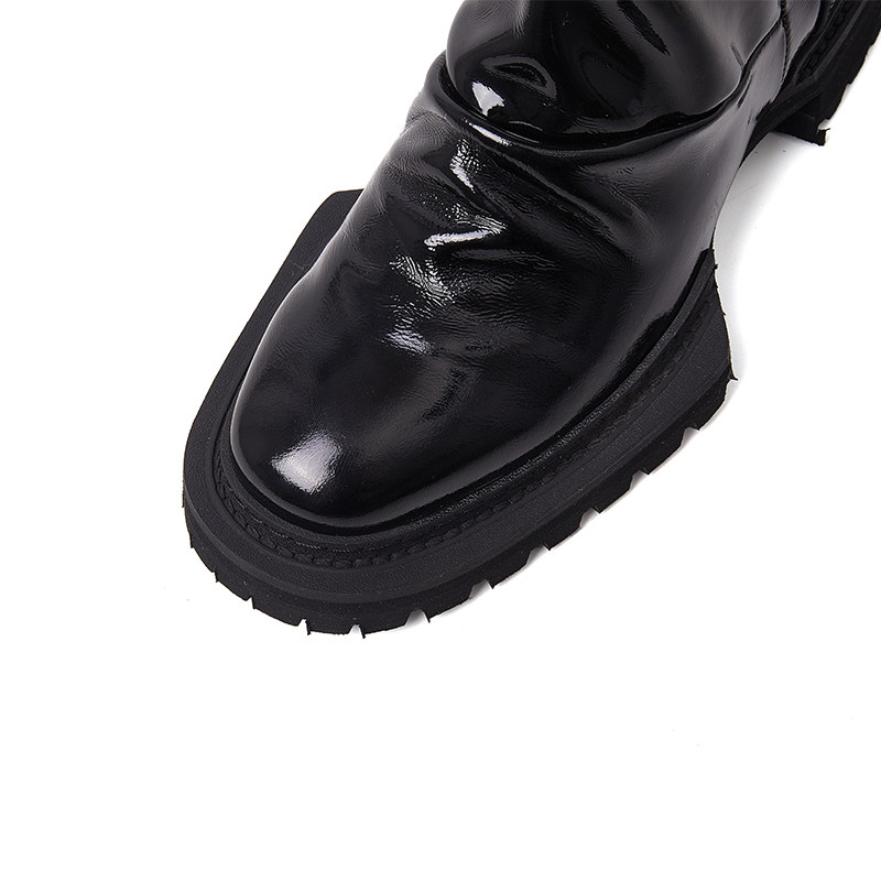 Original design 2021 new autumn winter genuine leather folds thick bottom long boot female lacquer leather personality riding boots Martin boots female