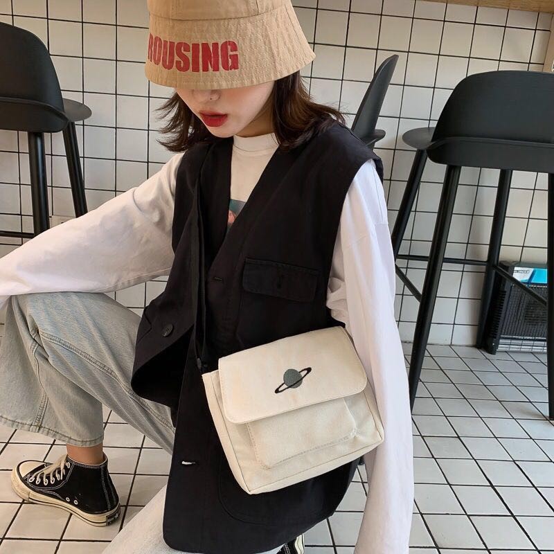 South Korea Ins Single-shoulder obliquely satchel men's day department Chaoyuan Cebu street racket Tooling Canvas Small Bag 100 Lapped Embroidery Mailbag