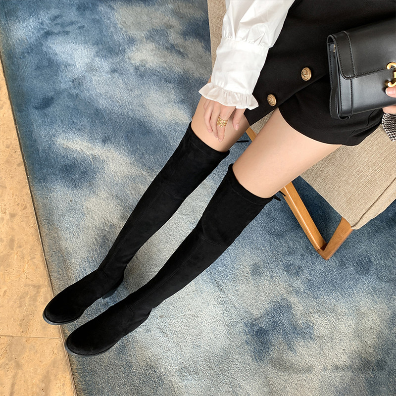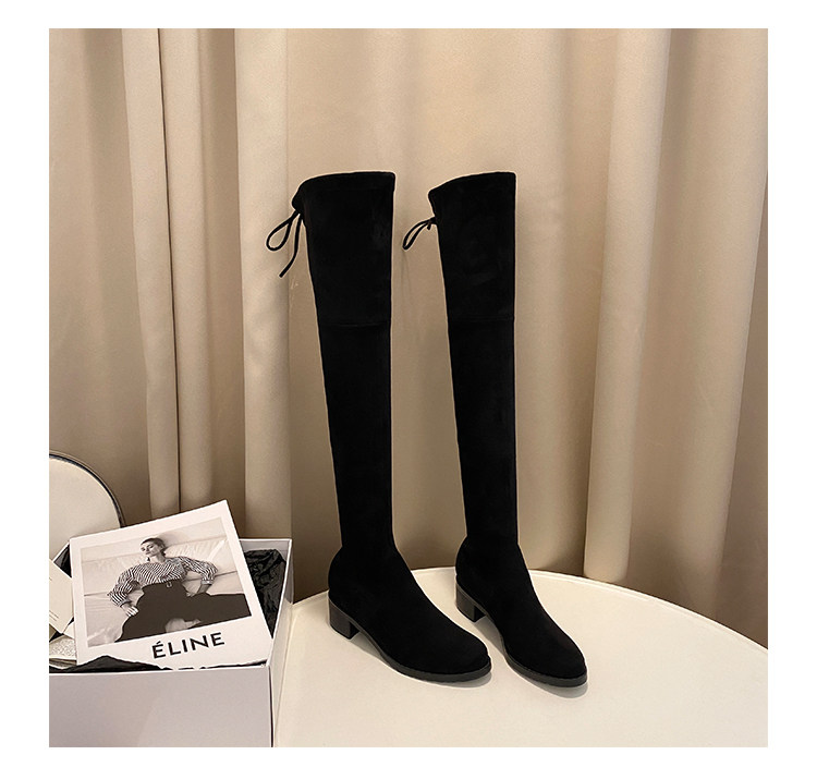 Spot uncle home] SW high barrel over-the-knee boots women's 2021 plus velvet straps chung heel boots stretch boots winter
