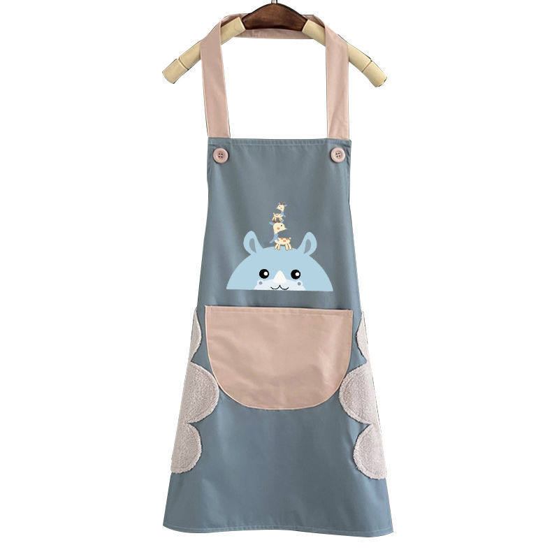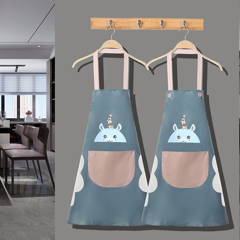 Apron women's home kitchen cute hand-wiping waterproof oil-proof cooking baking anti-fouling fashion coverall sleeveless large pocket