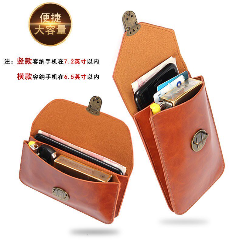 New Cow Leather Cell Phone Bag Men Ultra Slim Waterproof Wear Belt Multifunction pack Site working mobile phone protective sheath hanging bag