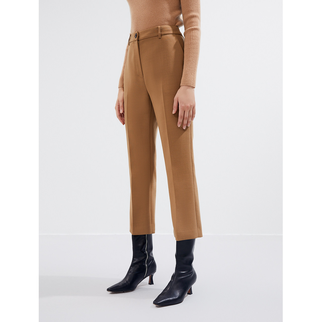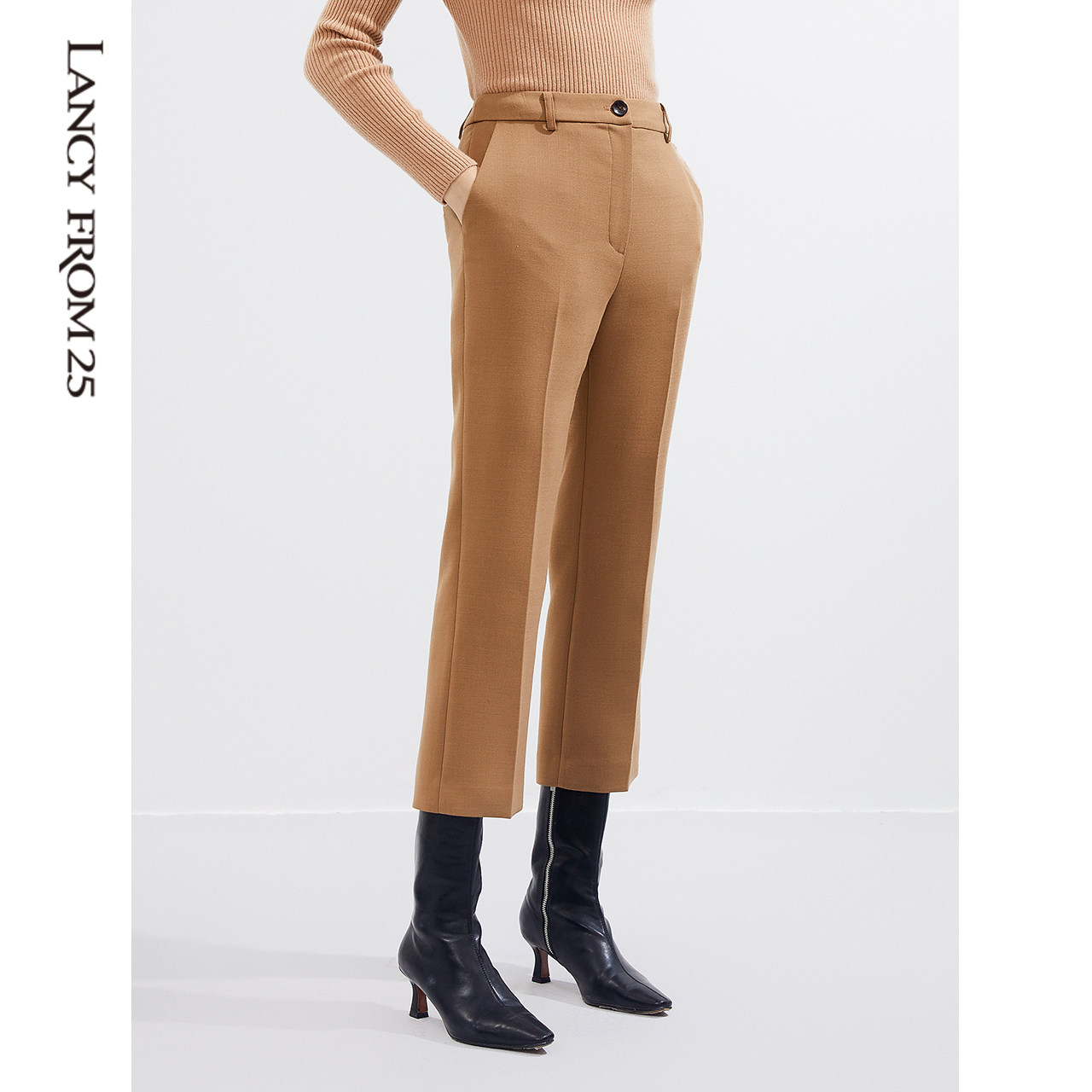 Lanzy Wool Pants 2021 Autumn Winter New High Waist Straight Drum Microlaser-colored Suit Suit Western Pants Woman