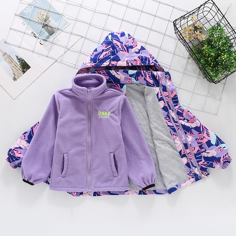 Girl's sub-machine clothes in three-in-one detachable autumn clothing 2021 new children rocking grain suede fall girl jacket spring and autumn