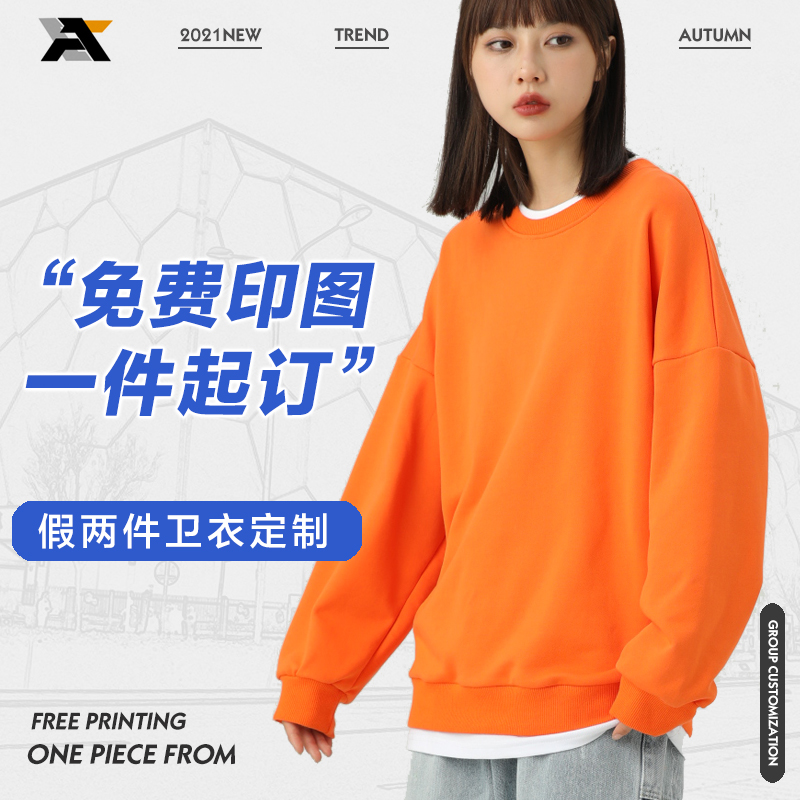 Fake two-piece round neck thick cotton T custom printing logo custom plus velvet thickened work clothes diy sports meeting class clothes