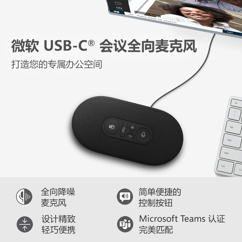 Microsoft USB-C Conference Omnidirectional Microphone Light Ride Portable Design Delicate Noise Reduction Microphone