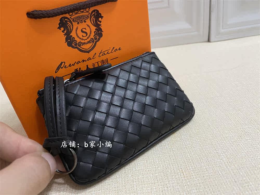 Woven Zero Wallet Card Bag Bracelet Key Bag Bull Leather New Genuine Leather Wallet Small Handbag Black Short male lady