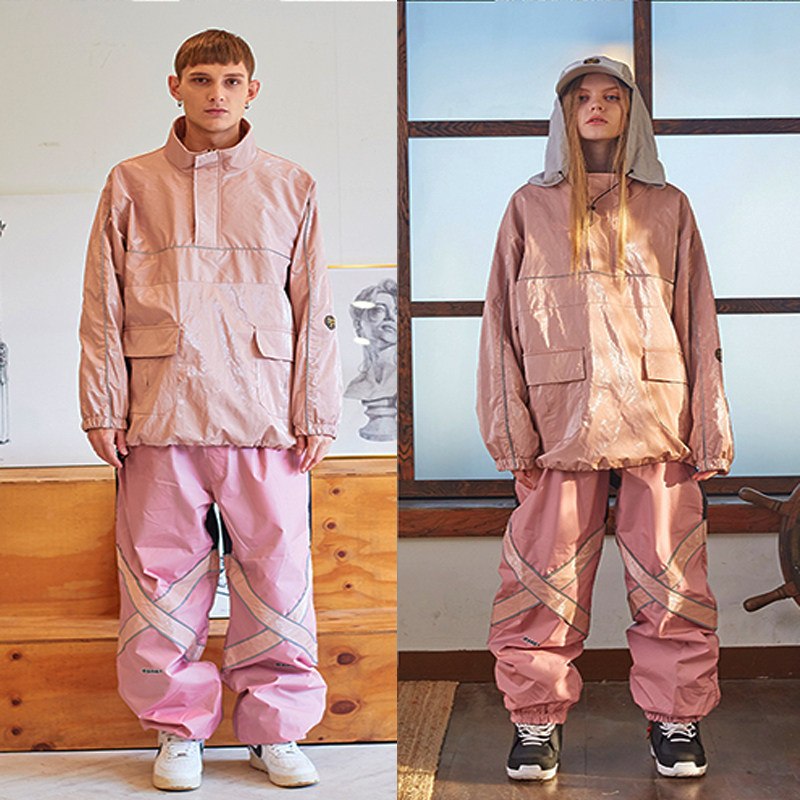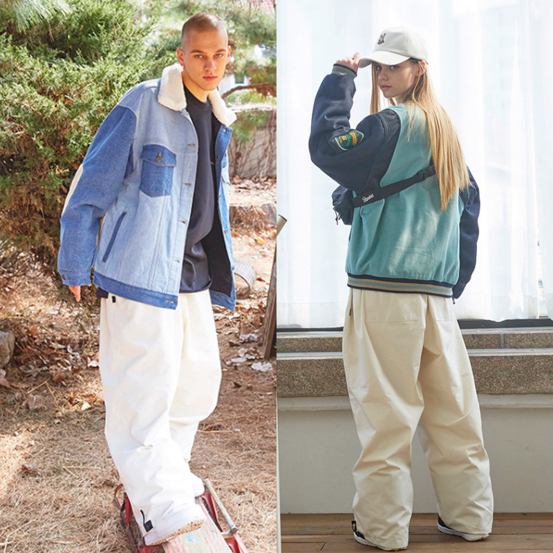 Spot 2122 Korean tide brand BSRABBIT ski pants waterproof leg straight loose men's and women's reflective snow pants